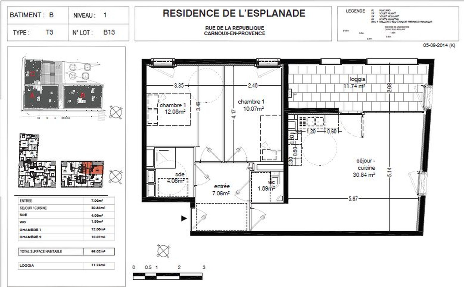 Carnoux, coeur du village, proche commodités. Dans programme neuf de 35 logements, T3 de 66,02m² avec loggia, parking en sous-sol et ascenseur.