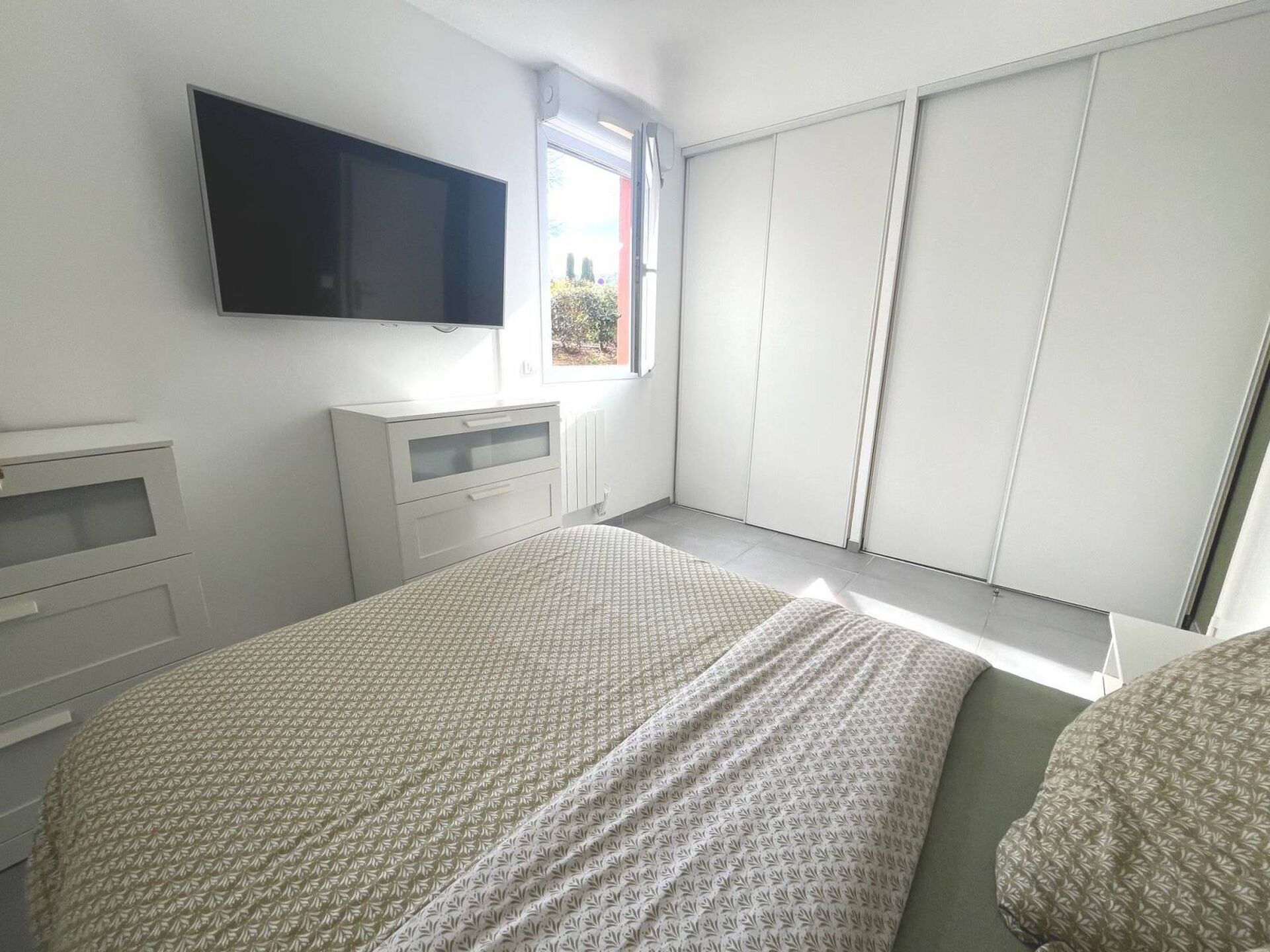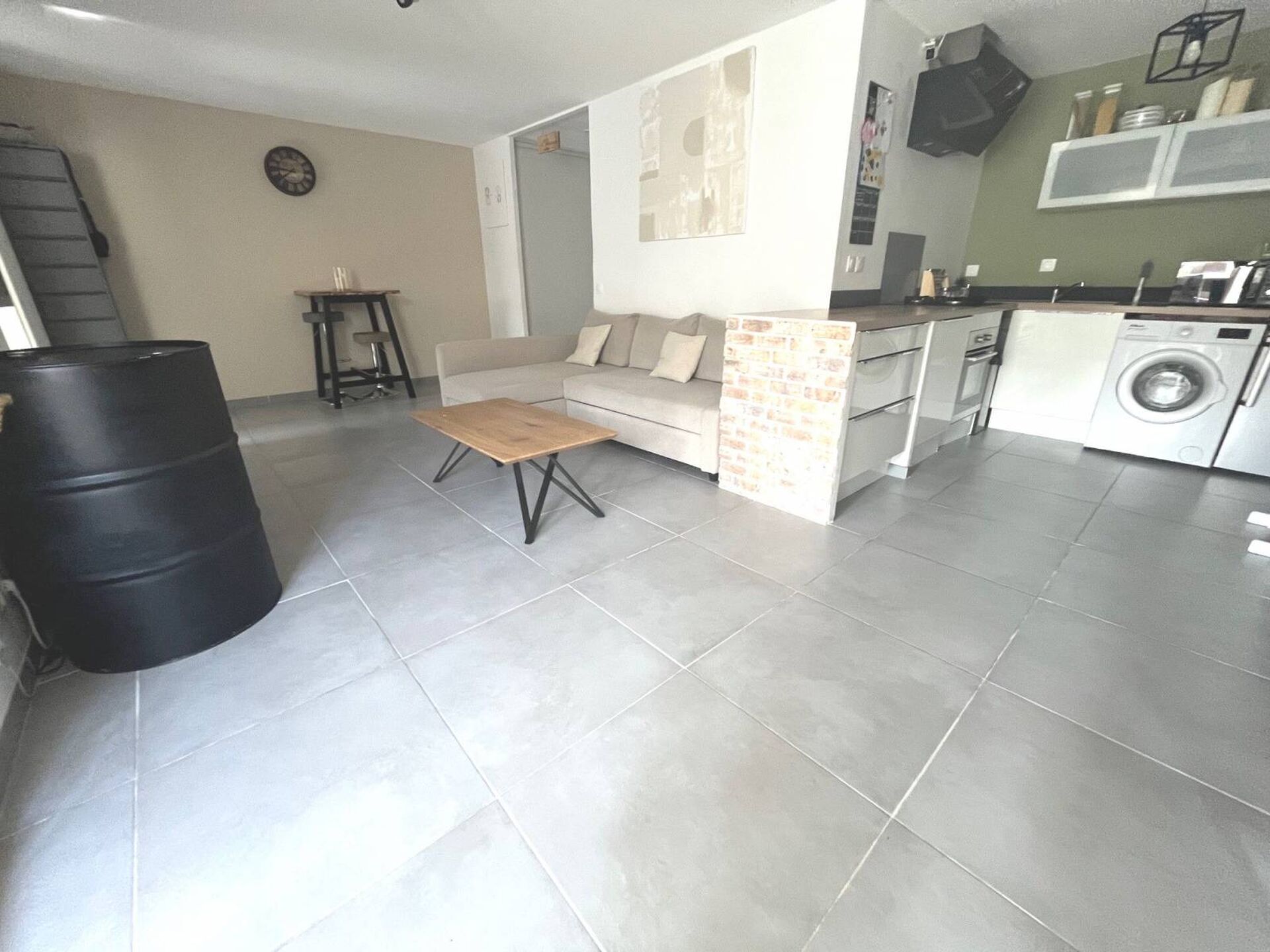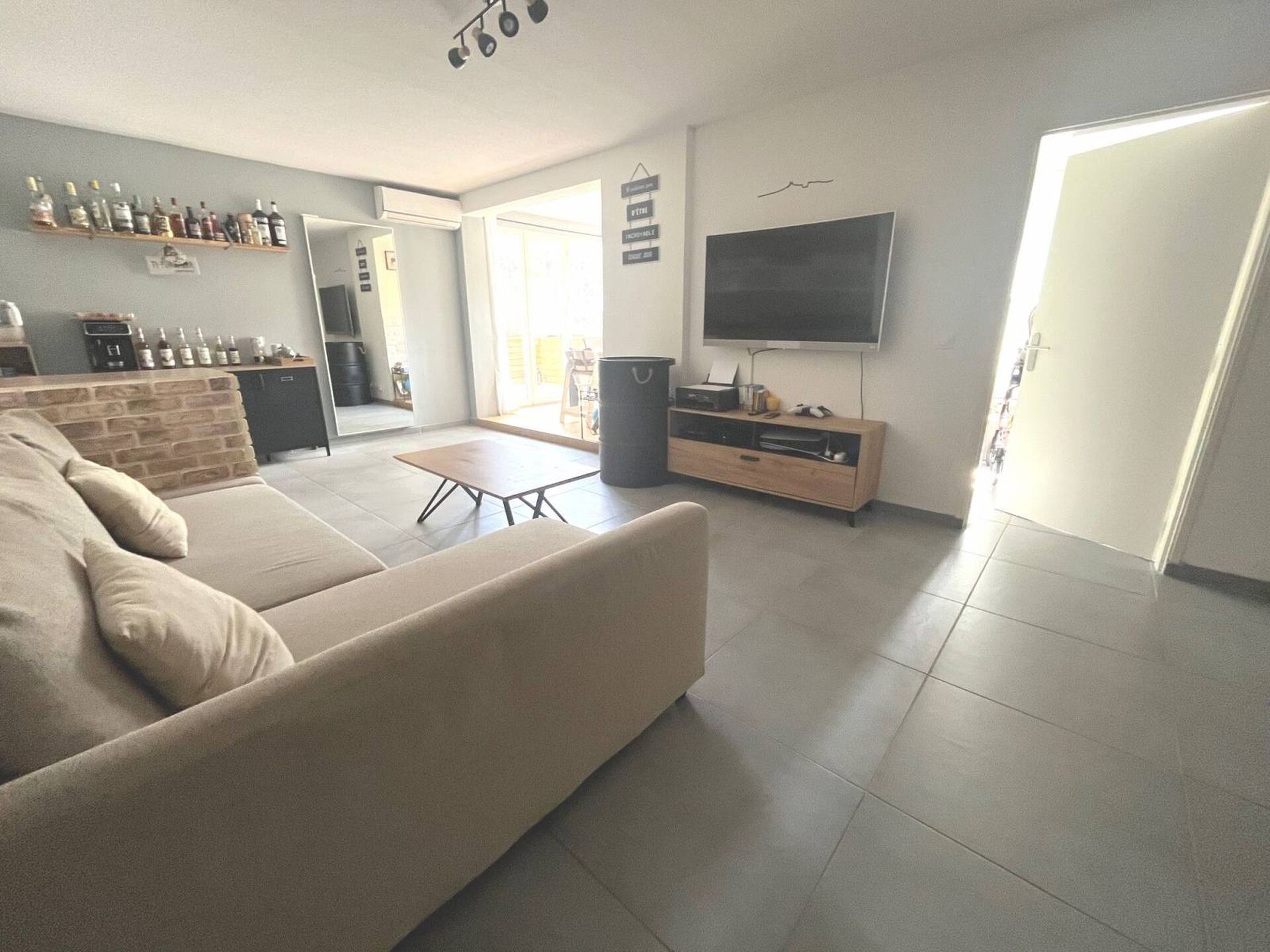 Proche toutes commodités, dans résidence de 2005, T2 rénové situé au rez-de-chaussée de 58m² (51m² loi Carrez), comprenant un séjour avec cuisine ouverte de 37m², une belle chambre avec placards, terrasse de 7m². Garage en option moyennant 20 000 €. Copropriété de 30 logements, charges mensuelles de 90€.