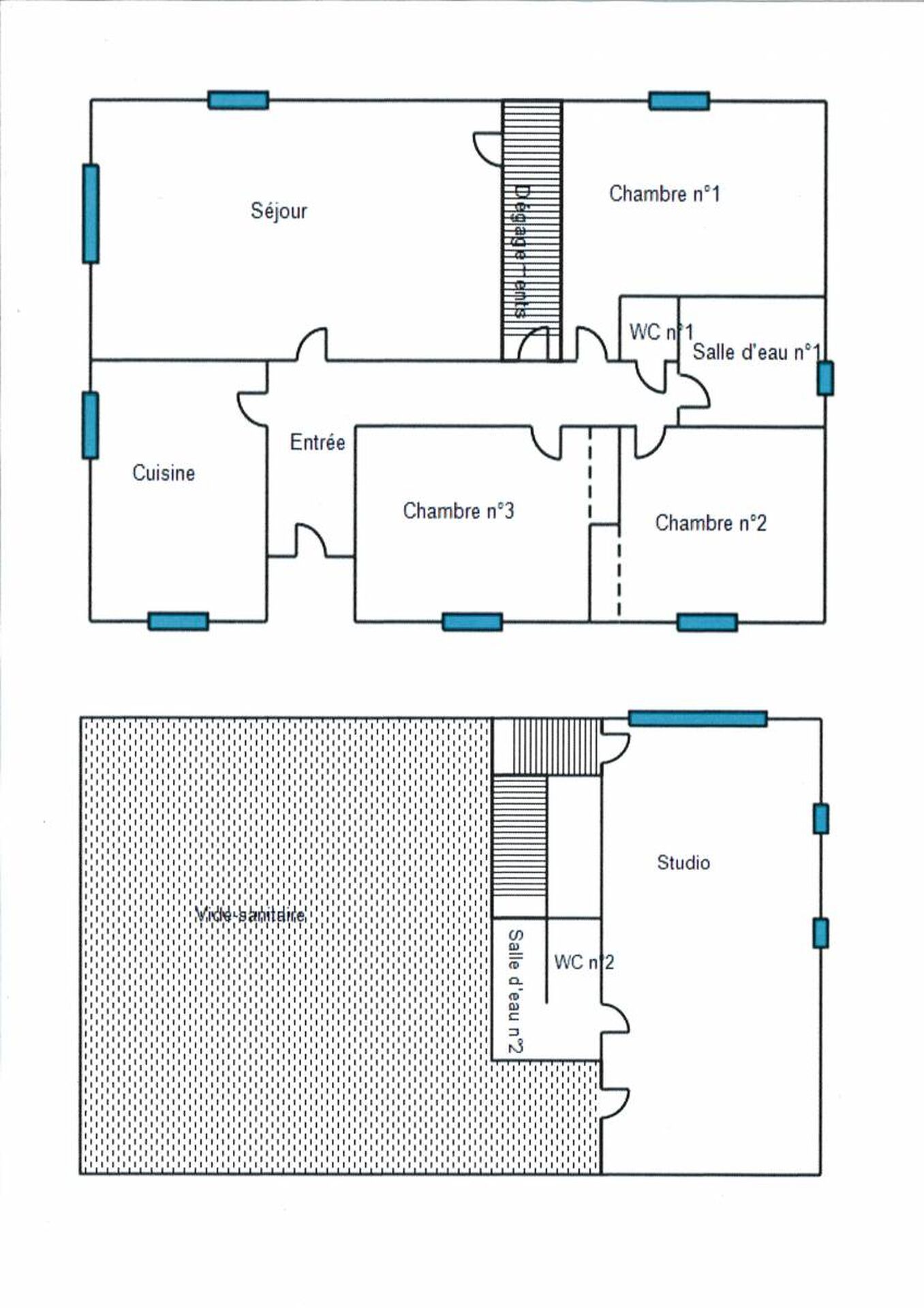 et en rez de jardin un studio communiquant de 41m² avec salle d'eau pouvant servir de quatrième chambre.
