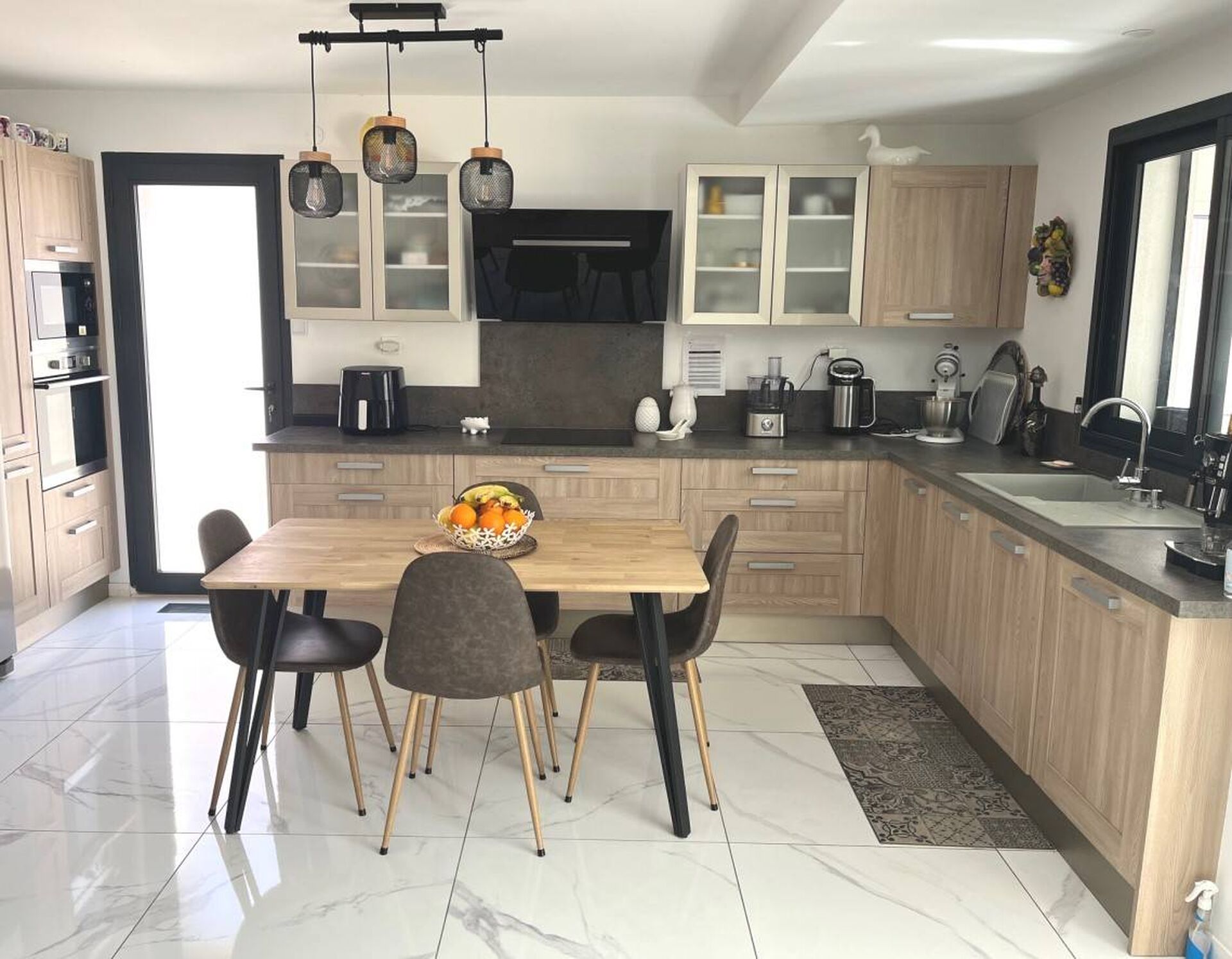 Dans une petite copropriété récente de trois habitations, maison T4/5 de 128m² habitables (117m² loi Carrez) élevée de deux niveaux sur sous-sol aménagé de 70m². Bel espace de vie de 70m² avec cuisine ouverte, trois chambres à l'étage, deux salles d'eau. Jardin de 300m² avec abri, plusieurs stationnements, très belles prestations. Charges mensuelles de 70€.